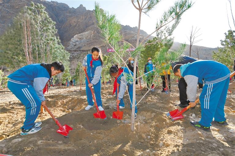 為踐行綠水青山就是金山銀山理念,積極推進(jìn)生態(tài)文明建設(shè),日前,拉薩市姜昆黃小勇希望小學(xué)學(xué)生和社會(huì)各界人士,共同開展義務(wù)植樹活動(dòng)。