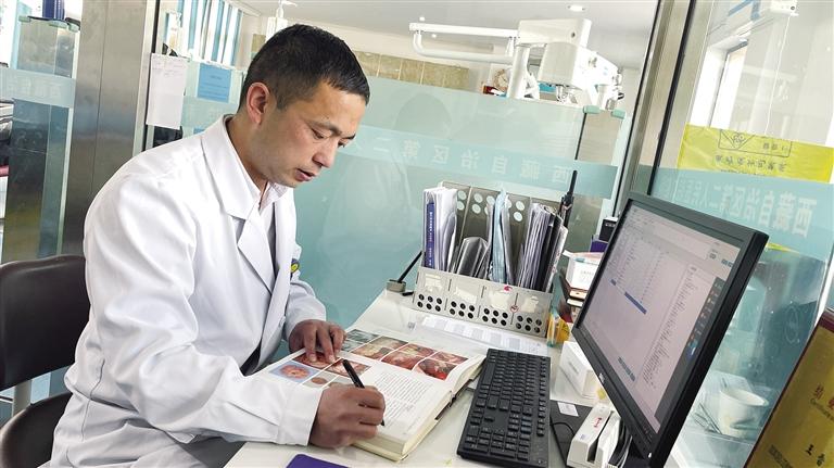 王雷在學(xué)習(xí)口腔專業(yè)知識。 文/圖 記者 婁夢琳 次吉