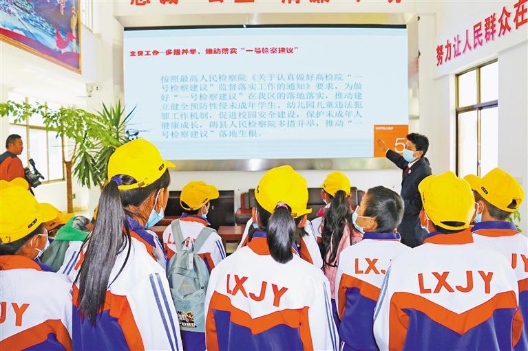 自2016年法治進(jìn)校園活動(dòng)開展以來,索朗旺久以高度的擔(dān)當(dāng)意識(shí),積極克服公訴、未檢人手不足的困難局面,先后擔(dān)任朗鎮(zhèn)小學(xué)法治副校長(zhǎng)、朗縣中學(xué)法治輔導(dǎo)檢察官,及時(shí)制訂《開展“法治進(jìn)校園”全縣巡講活動(dòng)實(shí)施方案》,定期深入全縣8所中小學(xué)及幼兒園開展法治宣講活動(dòng)。