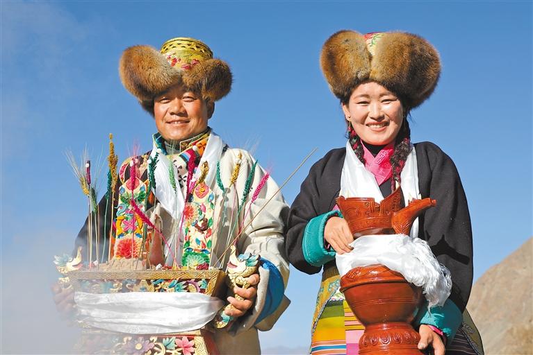 曲水縣協(xié)榮村春耕儀式上,身著盛裝的村民端著切瑪和青稞酒。[詳細(xì)] -