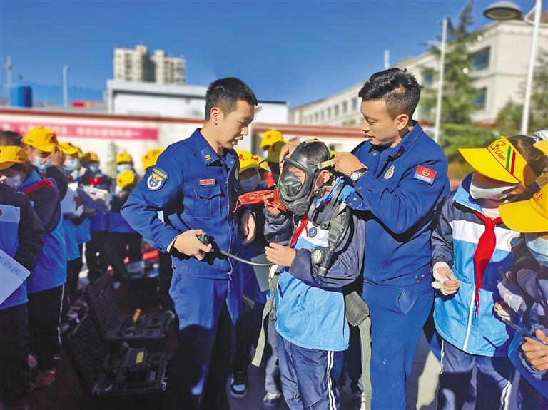 圖為拉薩市堆龍德慶區(qū)姜昆黃小勇希望小學(xué)少先隊開展“走進(jìn)消防救援隊 零距離體驗消防”活動。記者 張宇 通訊員 蘭佳琪 攝