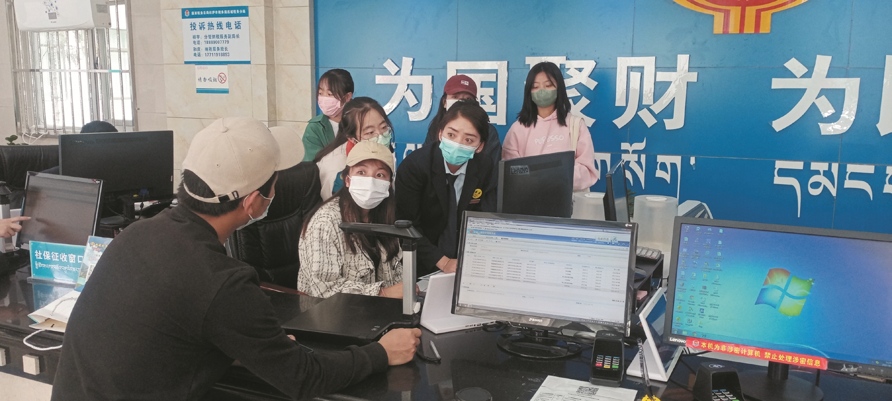 圖為辦稅服務(wù)廳工作人員為西藏大學(xué)政法學(xué)院學(xué)生講解稅收知識(shí)。拉薩融媒記者 齊永昌攝