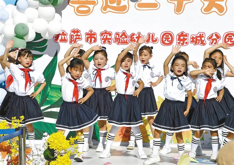 7月9日,拉薩市實驗幼兒園東城分園舉行“喜迎二十大 一起向未來”主題畢業(yè)典禮。孩子們用熱情洋溢的舞蹈、生動悅耳的歌聲,自信地展現(xiàn)所學的各類才藝和昂揚向上的精神風貌,精彩的表演贏得了陣陣掌聲,現(xiàn)場歡呼聲不斷。