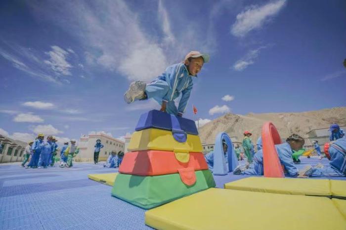 “新操場(chǎng)是我們的游樂(lè)園”,六歲的旦增次央第一次見(jiàn)到操場(chǎng)時(shí)開(kāi)心極了,“操場(chǎng)上可以跑可以跳,還有好多新玩具,太好玩了!”