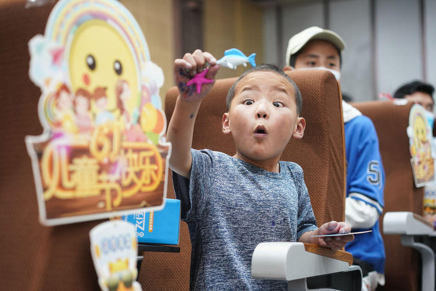 6月1日,在南京醫(yī)科大學(xué)第二附屬醫(yī)院,小患者在欣賞玩具。新華每日電訊記者季春鵬攝