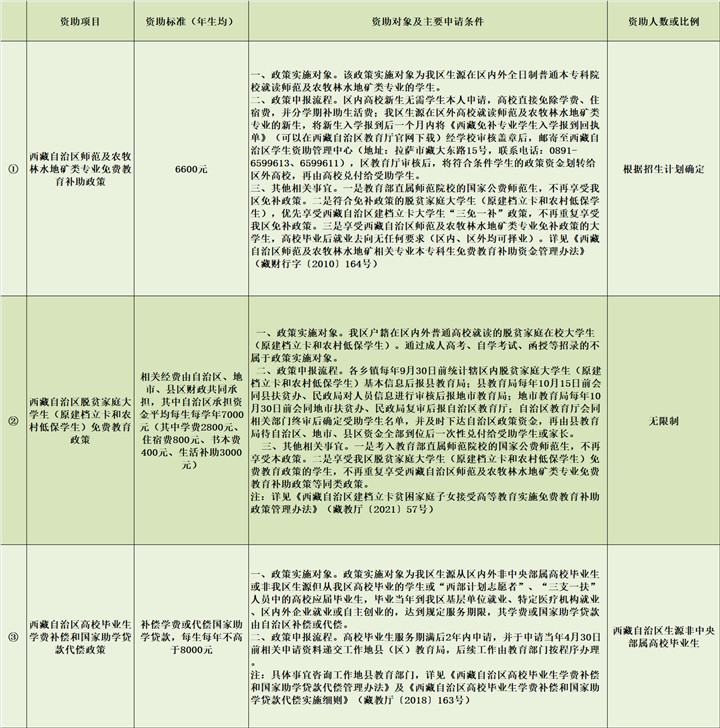 以下為西藏自治區(qū)本專(zhuān)科教育階段學(xué)生資助政策簡(jiǎn)介和服務(wù)熱線(xiàn)詳細(xì)情況: