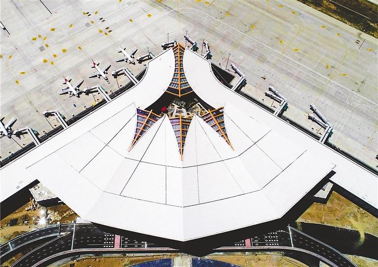 基礎(chǔ)設(shè)施更加完善,西藏民航航線擴(kuò)展到152條,通航城市發(fā)展到68個(gè),進(jìn)出港航班日均219架次,2021年旅客吞吐量達(dá)603萬(wàn)余人次。圖為西藏自治區(qū)拉薩市貢嘎國(guó)際機(jī)場(chǎng)T3航站樓一角。
