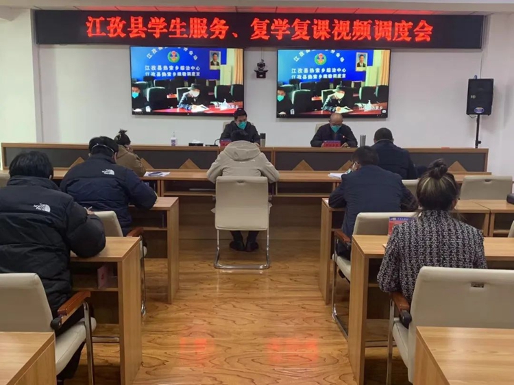 圖為日喀則市江孜縣復(fù)學復(fù)課視頻調(diào)度會現(xiàn)場