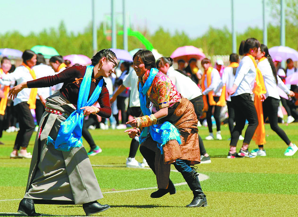 民族集體舞大賽現(xiàn)場。青海柴達木職業(yè)技術學院供圖