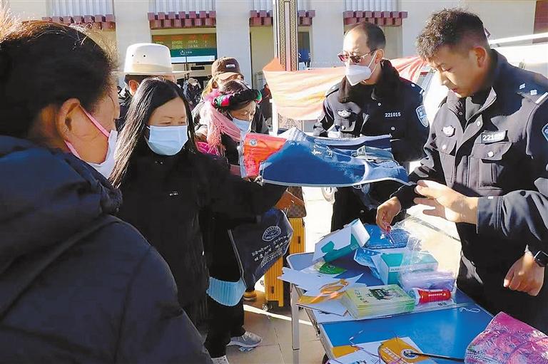7日,日喀則市禁毒辦組織警力在日喀則火車站開(kāi)展以“平安春運(yùn)·禁毒同行·遠(yuǎn)離毒品·健康生活”為主題的禁毒宣傳教育活動(dòng)。
