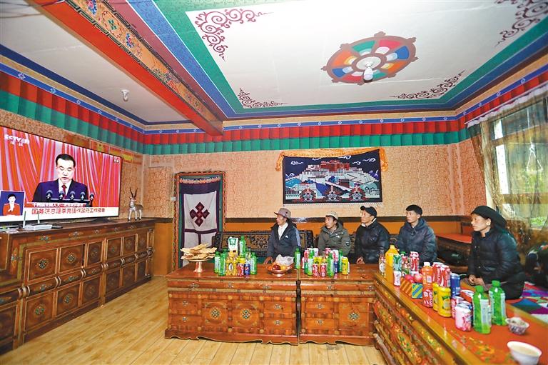 西藏廣大干部群眾收聽收看十四屆全國人大一次會議開幕盛況