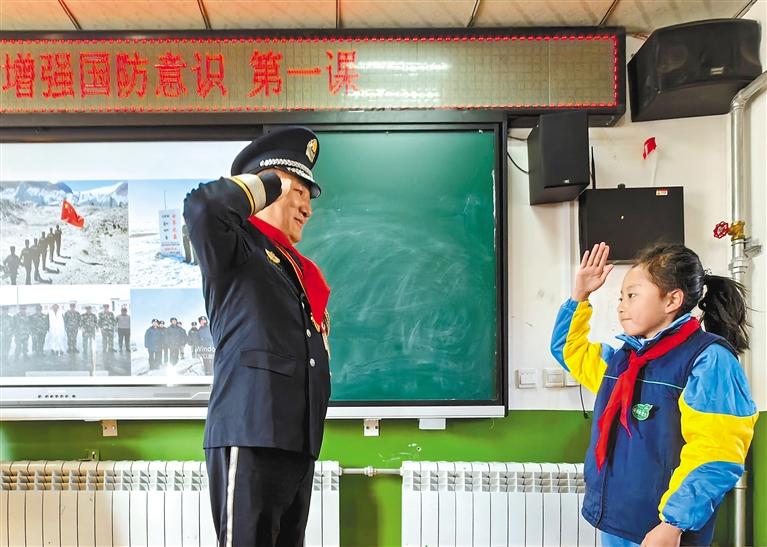拉薩市城關(guān)區(qū)拉魯小學(xué)以“弘揚(yáng)紅色文化 增強(qiáng)國(guó)防意識(shí)”為主題上好“開學(xué)第一課”。這是學(xué)生與宣講員索朗達(dá)杰互動(dòng)。記者 袁海霞 鄭璐 攝