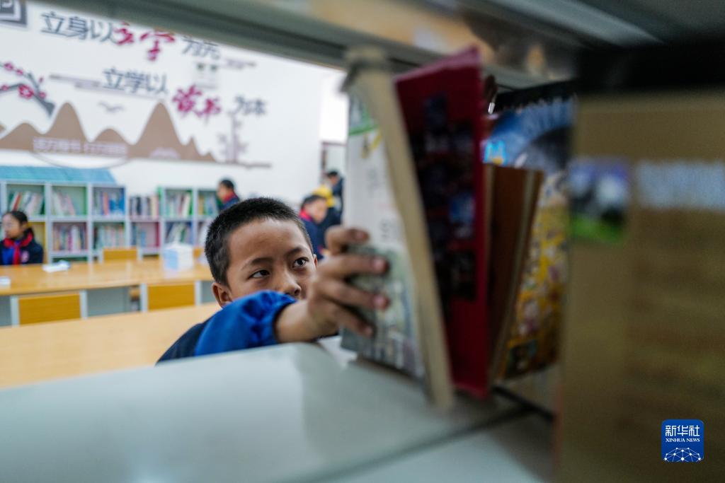 3月31日,下察隅鎮(zhèn)的孩子們?cè)陂_放書吧閱讀書籍。新華社記者 王澤昊 攝