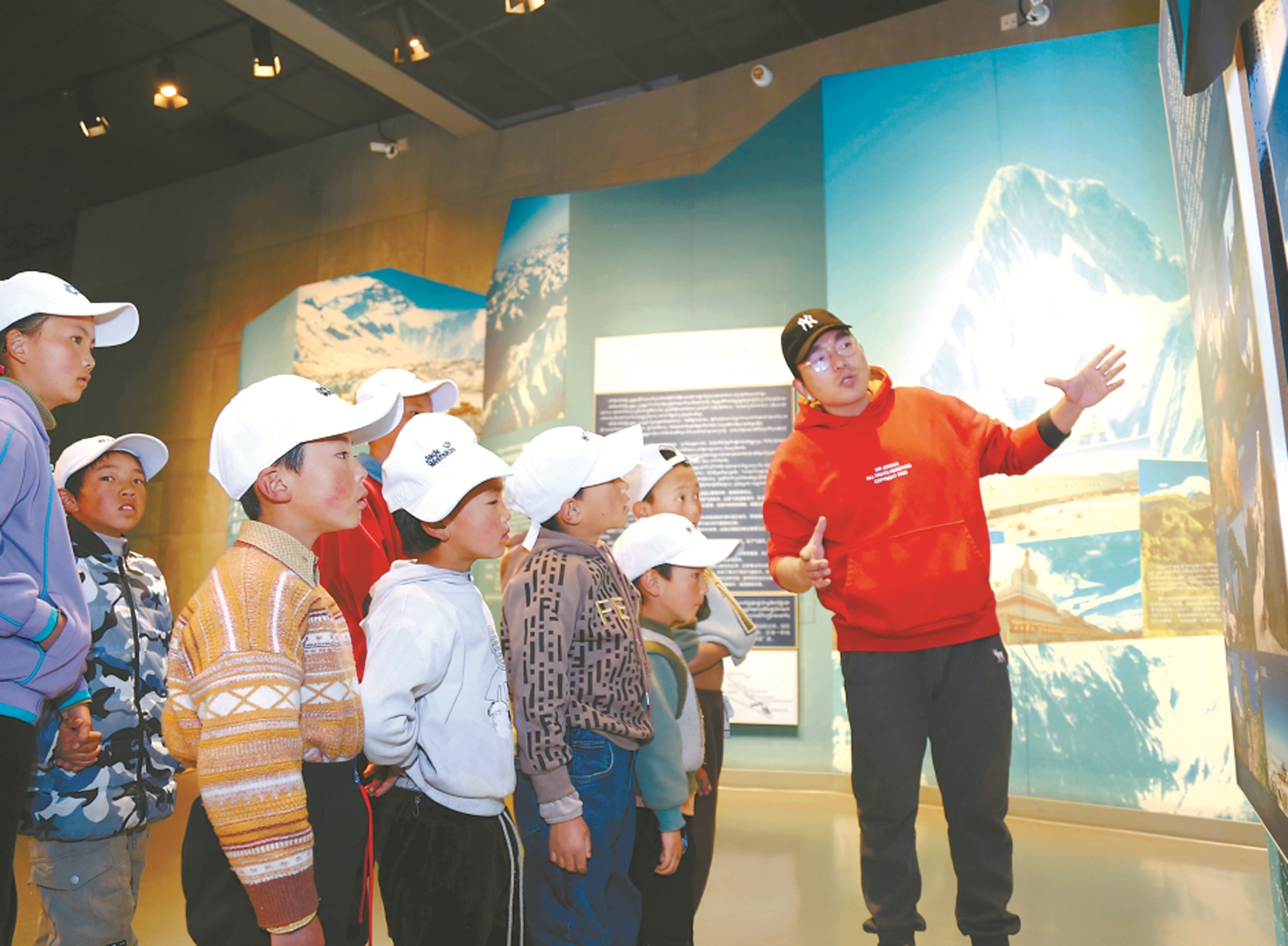圖為博物館工作人員給小朋友們科普知識(shí)。西藏日?qǐng)?bào)記者 格桑倫珠攝