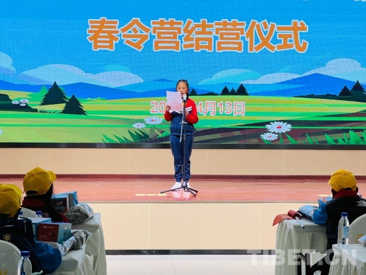 圖為多白鄉(xiāng)學(xué)生代表旦增康卓致謝現(xiàn)場 攝影:德吉卓瑪
