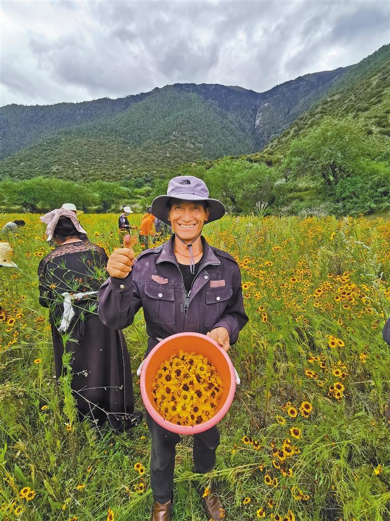 圖為巴宜區(qū)人社局聯(lián)合林芝林卡旅游開發(fā)有限公司開展“以工代訓”,組織農(nóng)牧民群眾在布久鄉(xiāng)工布原鄉(xiāng)景區(qū)采收雪菊。通訊員 楊健 記者 謝筱純 王珊 攝