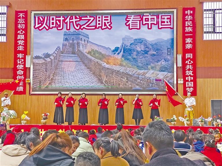 圖為康馬縣教育系統(tǒng)“書香新時(shí)代 ‘典’亮新征程”中華經(jīng)典誦讀大賽決賽現(xiàn)場。記者 汪純 攝