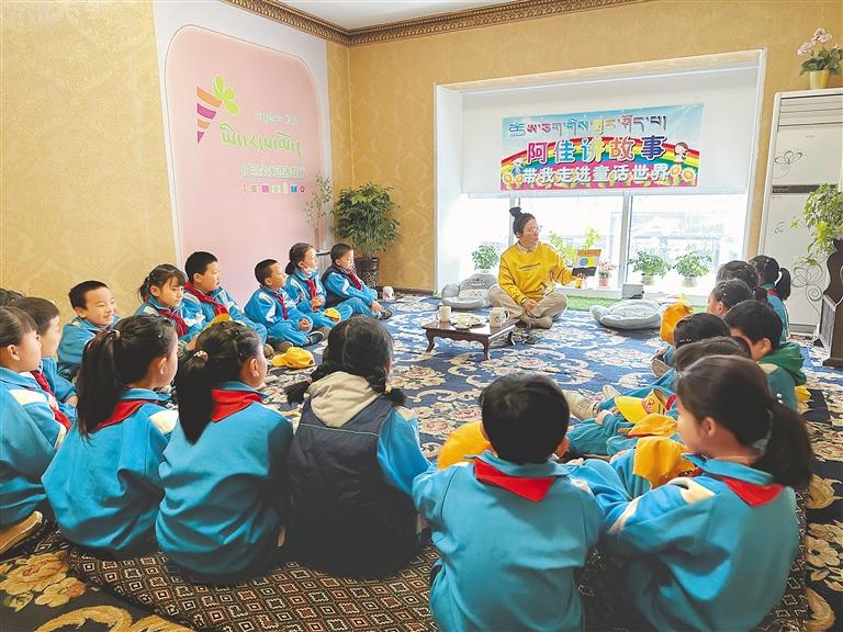 圖為孩子們在認真聽故事。記者 格桑倫珠 攝
