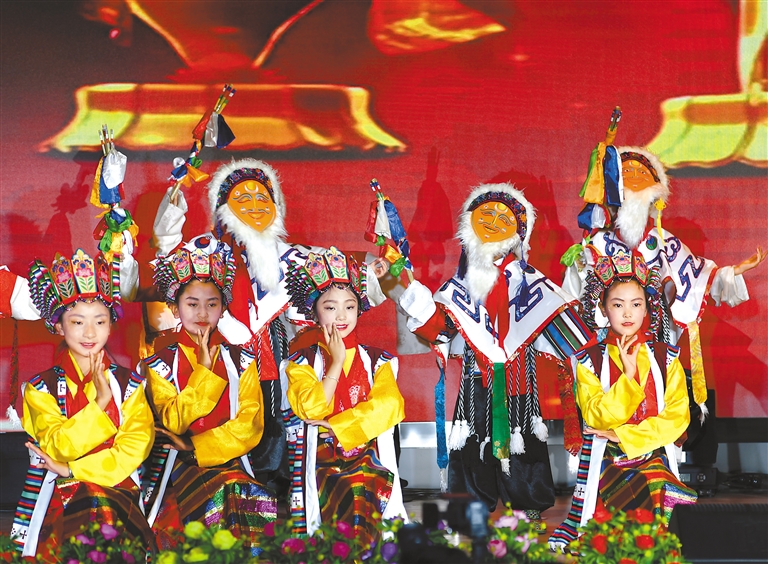 拉薩市少年宮的孩子們表演舞蹈——《吉祥藏戲》。記者 旦增蘭澤 攝