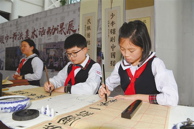 拉薩市實驗小學學生書寫書法作品。記者 李洲 攝