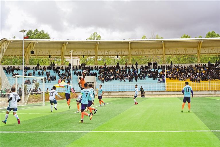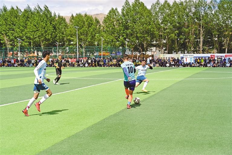 圖為日喀則市首屆“珠峰杯”足球聯(lián)賽決賽現(xiàn)場。記者 扎西頓珠 攝