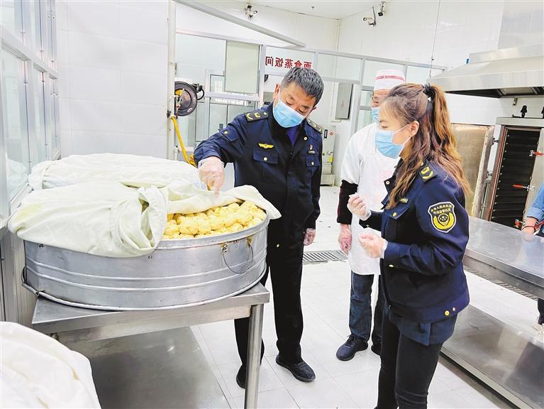 拉薩市市場監(jiān)管局執(zhí)法人員對(duì)學(xué)生早餐進(jìn)行檢查。記者 央金 攝