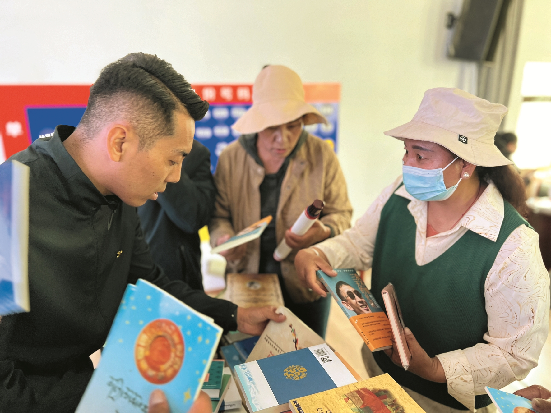 圖為圖書館工作人員在為居民免費(fèi)發(fā)放書籍。拉薩融媒記者 大索朗曲珍攝