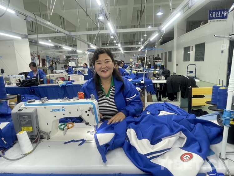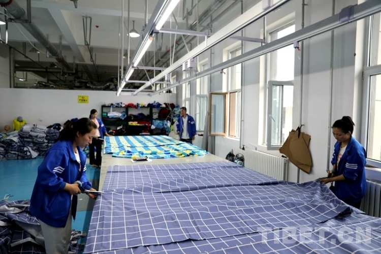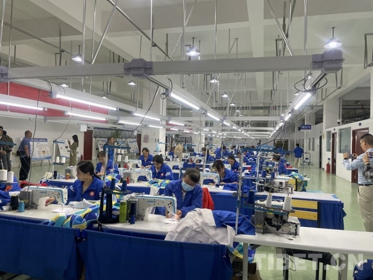 中國西藏網(wǎng)訊 6月28日,位于青海省海東市民和回族土族自治縣的青海洺欽和服飾制作車間內(nèi),電動縫紉機的噠噠聲不絕于耳,穿著藍(lán)色制服的工人正專注地趕制一批中學(xué)校服。