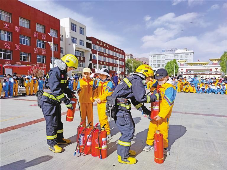 近日,日喀則市減災(zāi)委員會在日喀則市小學(xué)開展了“防災(zāi)減災(zāi)進(jìn)校園”主題活動。活動中,消防指戰(zhàn)員向師生詳細(xì)講解了消防裝備用途和用法,并組織師生開展消防應(yīng)急疏散演練。沉浸式、互動式、體驗(yàn)式的防災(zāi)減災(zāi)宣傳,進(jìn)一步增強(qiáng)了師生消防安全意識,提高了應(yīng)急避險(xiǎn)、自救互救能力。