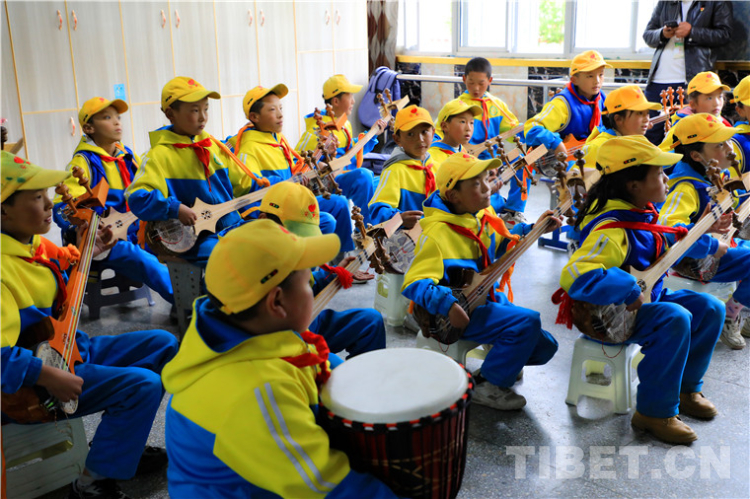 圖為西昌鄉(xiāng)小學(xué)學(xué)生在學(xué)習(xí)傳統(tǒng)樂器扎木念 攝影:王茜