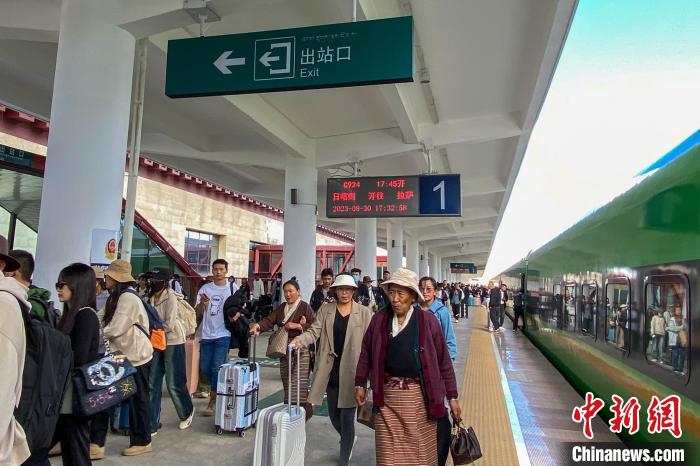圖為暑運(yùn)期間,旅客在日喀則火車(chē)站搭乘高原復(fù)興號(hào)動(dòng)車(chē)組出行。日喀則火車(chē)站 供圖