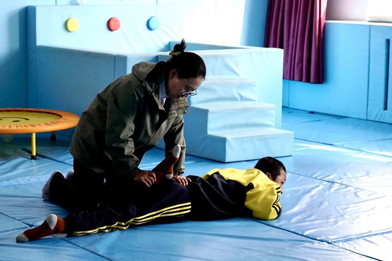 在海拔4500米的西藏那曲特殊教育學校里,傳來了一組充滿矛盾的聲音——輕揚悠長的純音樂和重重敲擊桌面的“咚咚”聲。