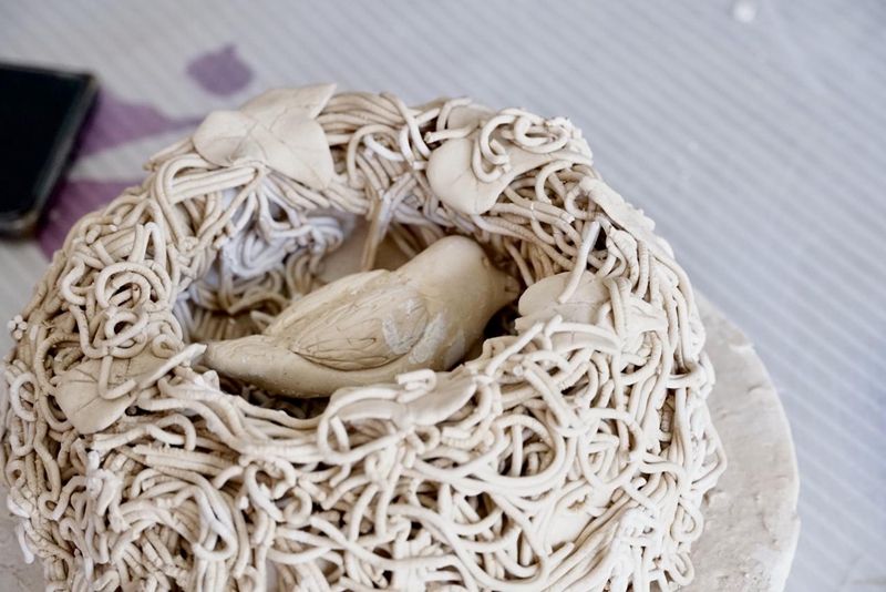 圖為特殊學校一位聾啞學生的陶藝作品《溫馨的鳥巢》。