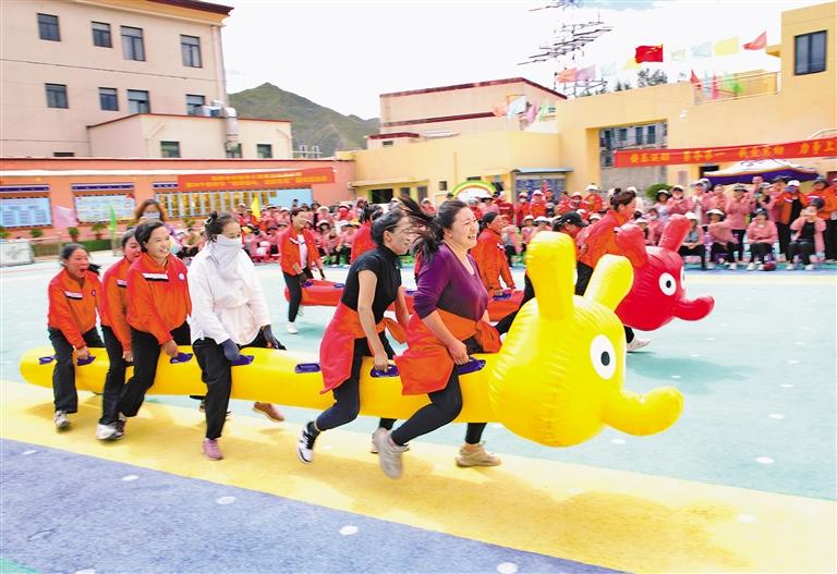 圖為氣氛熱烈的趣味運(yùn)動(dòng)會(huì)現(xiàn)場(chǎng)。記者 央金 攝