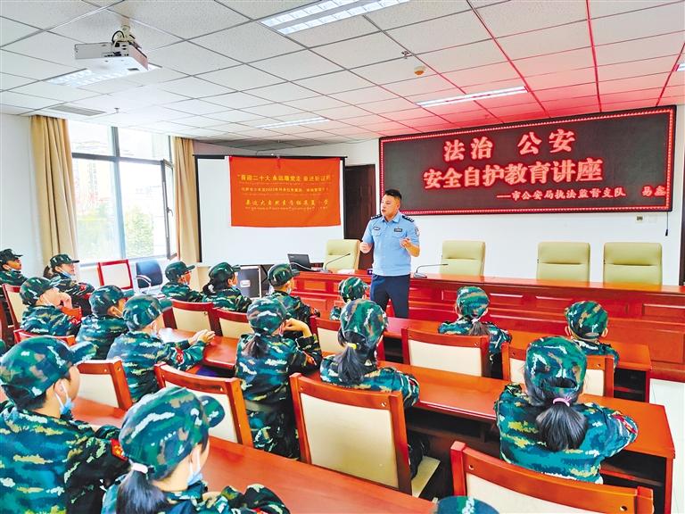 圖為拉薩市公安局執(zhí)法監(jiān)督支隊民警為少年宮學(xué)員開展安全自護(hù)教育講座。