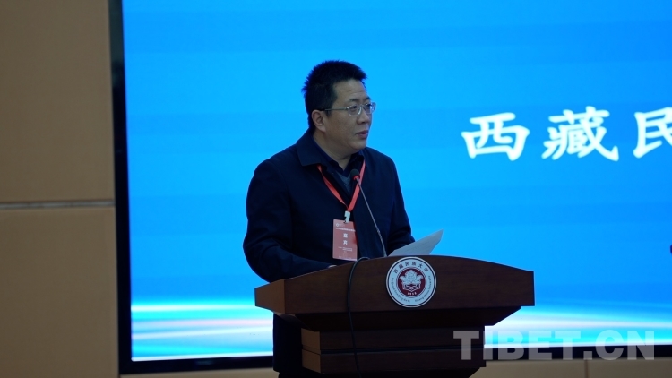 圖為西藏民族大學(xué)黨委副書記、校長(zhǎng)羅旺次仁代表學(xué)校致辭 攝影:陳浩力
