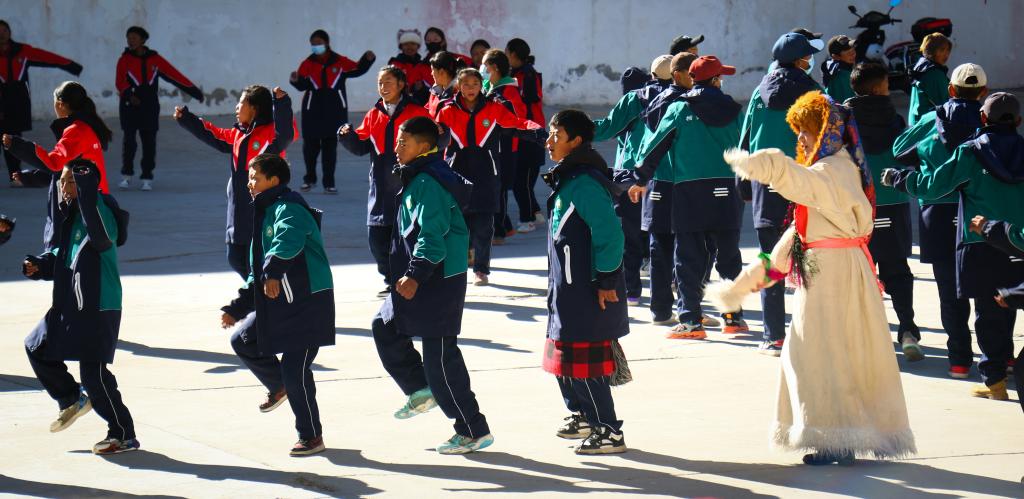西藏阿里措勤縣中學(xué)的學(xué)生們涌向操場 以班級為單位圍成一個個圈伴隨著充滿節(jié)奏的傳統(tǒng)音樂?!?a href='./t20231124_7528296.html' target="_blank">[詳細]