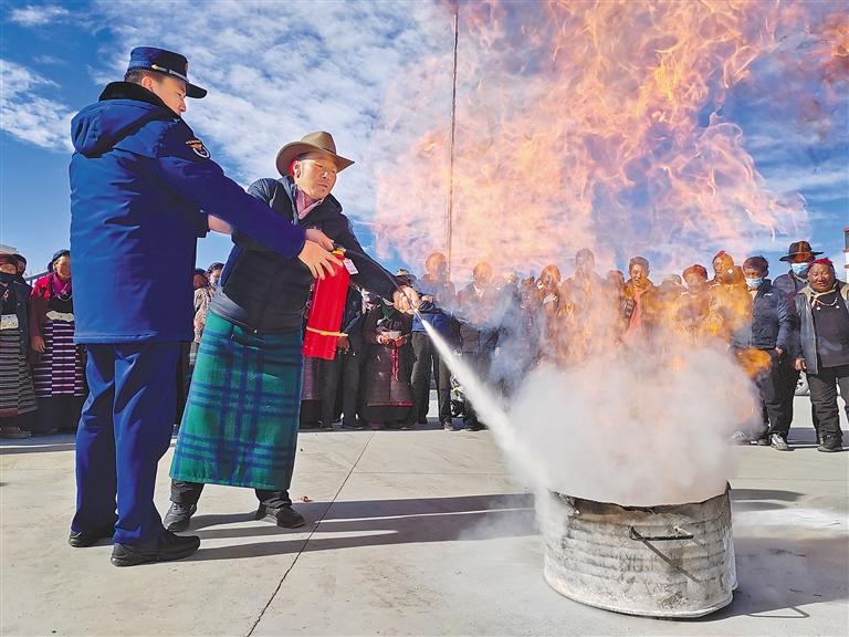 活動(dòng)中,隊(duì)伍各級(jí)積極制作藏漢雙語(yǔ)宣傳彩頁(yè)、海報(bào)、宣傳冊(cè)、宣傳袋等“消防禮包”80余萬(wàn)份,聯(lián)動(dòng)消防志愿者通過(guò)“走街串巷”的形式深入轄區(qū)“九小場(chǎng)所”、沿街門店、居民樓院等廣泛發(fā)放,并采取“面對(duì)面”宣傳講解、“一對(duì)一”互動(dòng)交流等方式,向廣大群眾傳授防火基本常識(shí),教授如何正確使用滅火器、如何撲救初起火災(zāi)、如何逃生自救等。在開(kāi)展宣傳的同時(shí),“火焰藍(lán)”和“志愿紅”還進(jìn)村入戶,幫助群眾查找火災(zāi)隱患,講解隱患存在的嚴(yán)重危害性,切實(shí)提高群眾的消防安全意識(shí)和自防自救能力。