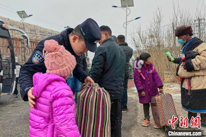 西藏阿里日土移民管理警察護(hù)送學(xué)生返校。羅發(fā)燕 攝
