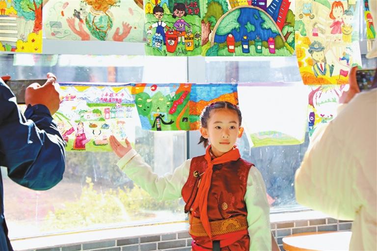 圖為孩子們在展館內(nèi)繪畫。記者 袁海霞 鄭璐 通訊員 普珍 攝