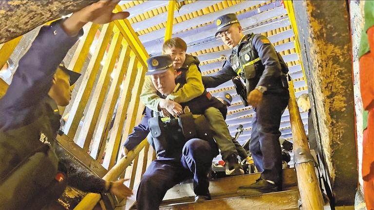 消防指戰(zhàn)員們用擔(dān)架幫助殘障游客“圓夢(mèng)”。