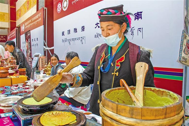 在日喀則市非遺展銷現(xiàn)場,展商在制作蕎麥餅。記者 旦增嘎瓦 楊子彥 扎西頓珠 攝