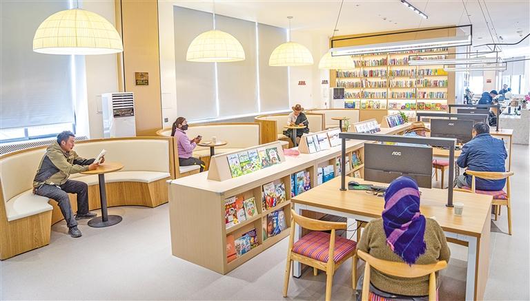 那曲市色尼區(qū)群眾在“溫暖嘉·色尼城市書房”閱讀書籍。 新華社記者 丁增尼達(dá) 攝