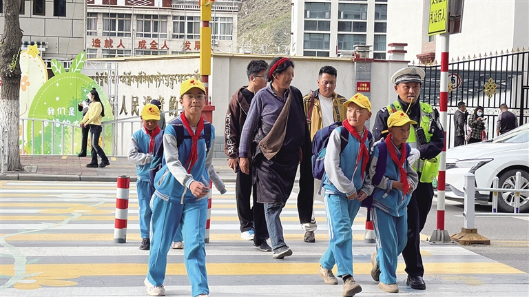 此外,拉薩交警還利用每日“護(hù)學(xué)崗”時(shí)間,主動(dòng)引導(dǎo)學(xué)生正確過(guò)馬路、認(rèn)識(shí)交通信號(hào)燈,提醒學(xué)生不在馬路上嬉戲、追逐打鬧,不乘坐三輪摩托車(chē)等不規(guī)范車(chē)輛,并向接送學(xué)生的家長(zhǎng)講解接送孩子途中應(yīng)注意的安全事項(xiàng),告誡學(xué)生家長(zhǎng)以身作則,杜絕橫穿馬路、闖紅燈等交通陋習(xí),共同營(yíng)造安全、暢通、文明和諧的道路交通環(huán)境?!拔覀児膭?lì)孩子們將學(xué)到的交通安全知識(shí)帶回家,充分發(fā)揮‘小手拉大手’作用,向家人宣傳道路交通安全知識(shí),強(qiáng)化家長(zhǎng)、學(xué)生安全意識(shí)和自我保護(hù)意識(shí)?!瘪R定雄說(shuō)。