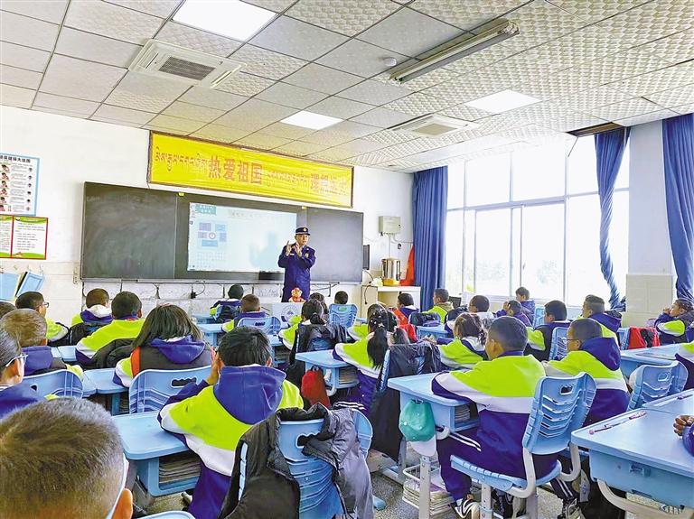 圖為消防工作人員向?qū)W生講解消防應(yīng)急知識(shí)。記者 巴桑旺姆 攝