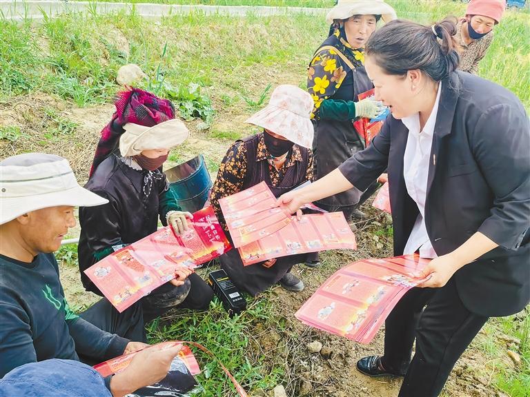 圖為林周縣人民法院工作人員為群眾發(fā)放宣傳冊(cè)。記者 央金 攝