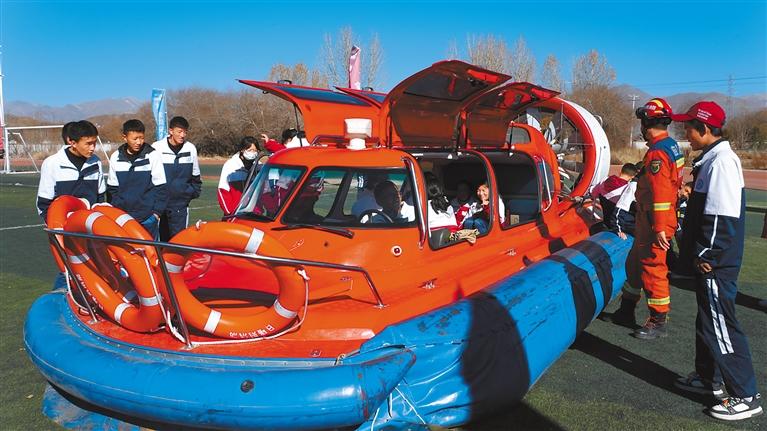 學生體驗消防救援艇。