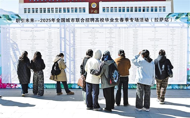 近日,由拉薩市人力資源和社會(huì)保障局主辦,西藏大學(xué)、西藏民族大學(xué)協(xié)辦的2025年全國城市聯(lián)合招聘高校畢業(yè)生春季專場活動(dòng)在西藏大學(xué)納金校區(qū)舉行。招聘會(huì)提供了文秘、出納、會(huì)計(jì)、醫(yī)輔、客服等1650個(gè)崗位,吸引了不少學(xué)生前來應(yīng)聘。