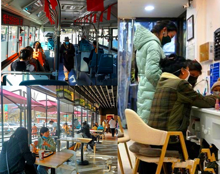隨著西藏自治區(qū)連續(xù)50多天無新冠肺炎新增確診或疑似病例。近日,日喀則市發(fā)文明確,取消居家隔離、集中隔離,同時(shí),各餐飲企業(yè)和個(gè)體餐飲門店恢復(fù)堂食,經(jīng)濟(jì)社會(huì)逐步趨于正常。圖為市民生活如常,戴口罩坐公交、在餐飲店堂食、在美甲店美甲 圖片來源:中國新聞網(wǎng)