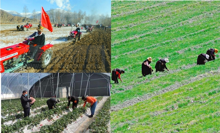 3月,正值春耕備耕重要階段。在林芝市各鄉(xiāng)鎮(zhèn)的田間地頭,人們有的犁地播種、灌水施肥,有的壓枝剪葉、疏花疏果……廣袤的土地逐漸蘇醒,呈現(xiàn)出一派“人勤春來早,田間耕作忙”的生動(dòng)景象。圖為林芝市農(nóng)民忙碌景象 圖片來源:西藏日報(bào)、人民網(wǎng)